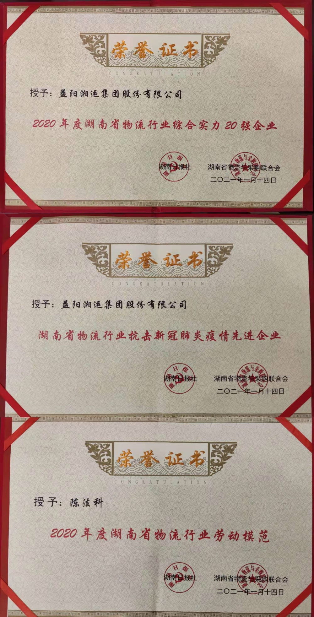 4月16日,在湖南省物流與采購聯(lián)合會(以下簡稱“湘物聯(lián)”)第四屆理事會第七次會長辦公會上,益陽湘運集團(tuán)股份有限公司被授予“2020年度湖南省物流行業(yè)綜合實力20強企業(yè)”、“湖南省物流行業(yè)抗擊新冠肺炎疫情先進(jìn)企業(yè)”榮譽稱號,益陽湘運物流有限責(zé)任公司經(jīng)理陳法科被授予“2020年度湖南省物流行業(yè)勞動模范”榮譽稱號。