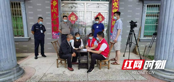 志愿者協(xié)助群眾填寫接種知情書和個(gè)人信息登記。