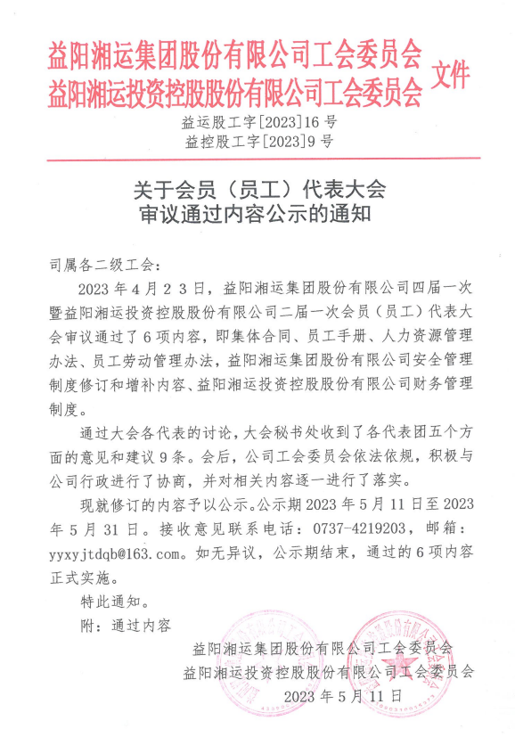 關于會員(員工)代表大會審議通過內(nèi)容的公示