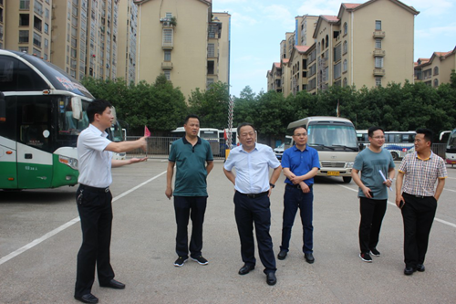 6月20日,沅江市委書記黃育文(左三)率應(yīng)急管理、消防、交通和城管等部門,來到沅江百合汽車站檢查指導(dǎo)安全生產(chǎn)工作。沅江客運(yùn)分公司經(jīng)理成科(左一)陪同并匯報(bào)工作。