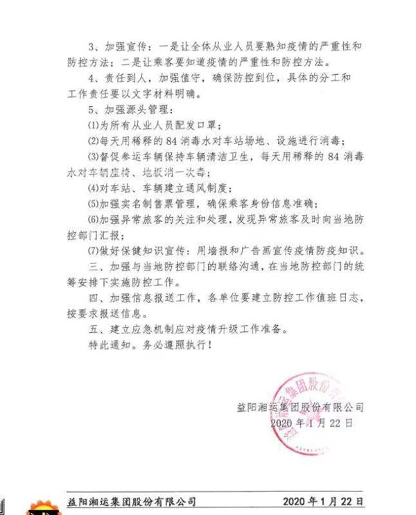 益陽(yáng)湘運(yùn)集團(tuán)股份有限公司正式發(fā)文,對(duì)集團(tuán)疫情防控工作作出了全面部署。