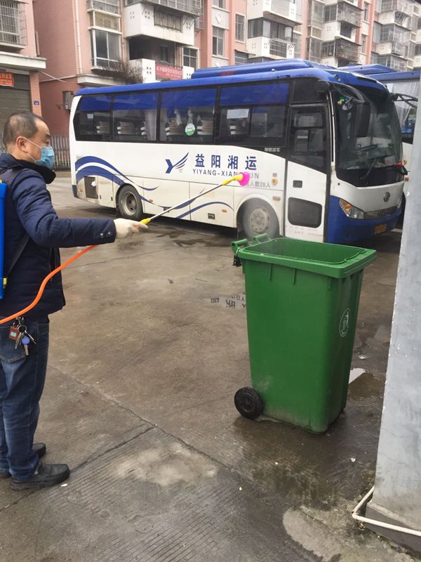 2月1日,公司所屬各車站盡管沒有恢復(fù)開班,但是留守值班人員堅(jiān)持按照當(dāng)?shù)匾咔榉揽夭块T的工作要求,認(rèn)真落實(shí)公共區(qū)域、家屬區(qū)等場(chǎng)地的消毒和清潔。圖1為安化運(yùn)輸分公司副經(jīng)理夏遠(yuǎn)囑給站場(chǎng)消毒,圖2為梅城客運(yùn)分公司經(jīng)理李義仁給辦公區(qū)消毒。